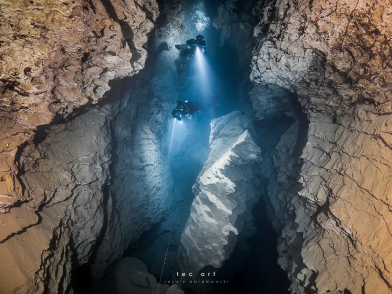 První podvodní průzkumy začaly v 50. letech. V 70. a 80. letech potápěči z potápěčského klubu FTSK Delfin úspěšně prozkoumali a zmapovali více než 400 metrů jeskynního systému. Pravidelně se potápěli v této „staré části“, ale v roce 2002 objevili nový průchod. Nová část byla obrovská, zmapovali například 86 metrů dlouhou, 15 metrů vysokou a 27 metrů širokou síň. Jeskynní systém se táhne na více než 6 kilometrů, ale v hloubce je stále co objevovat.